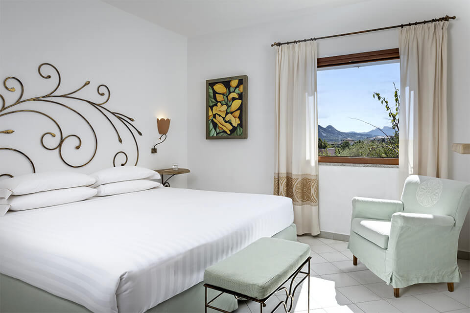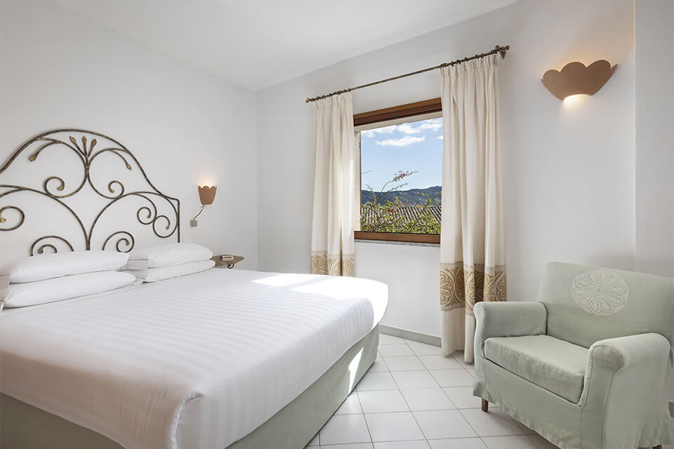 Die Classic-Zimmer sind in einem einfachen und modernen mediterranen Stil eingerichtet. Sie verfügen über ein Doppelbett für zwei Erwachsene, Bad mit Dusche und eine Veranda oder eine Terrasse mit Tisch und Stühlen. Der Einrichtungsstil erinnert mit Möbeln aus Schmiedeeisen und bestickten Stoffen an die Tradition des sardischen Handwerks. Die Zimmer liegen zentraler und näher an den Hauptdienstleistungen des Resorts.